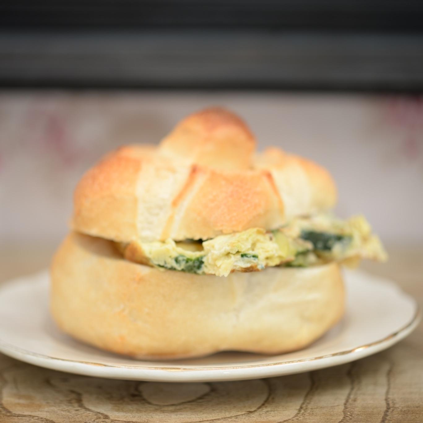 Frittata soffice con zucchine profumate. Un classico di casa dentro il pane romano.Uova, zucchine rosolate e poco altro: la frittata alle zucchine è la regina dei pranzi leggeri, delle merende improvvisate, delle pause sincere. Alta e soffice, profuma di cucina vera. La serviamo così com’è o dentro una rosetta fragrante, come si faceva una volta quando si portava a lavoro “qualcosa di buono”. Un piatto semplice, che si fa amare per la sua leggerezza e il suo gusto gentile.