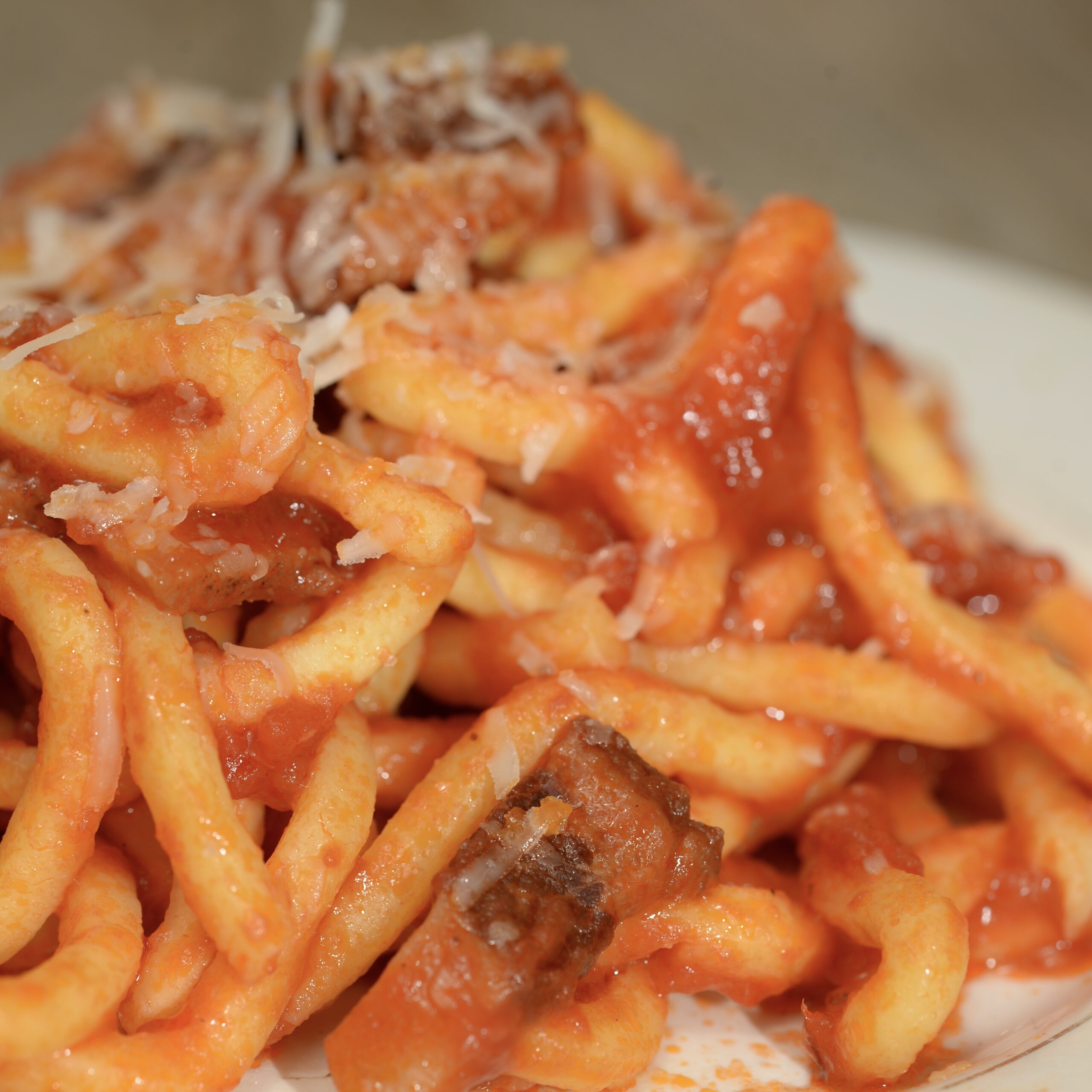 Al Mercato di Testaccio, da Orietta e Rolando, l’Amatriciana non è solo un piatto: è un rito. Preparato con tonnarelli freschi, ruvidi al punto giusto per catturare ogni goccia di sugo, questo piatto racconta una storia antica di sapori autentici e gesti tramandati a voce. Il guanciale croccante, il pomodoro corposo e il pecorino romano stagionato si fondono in un equilibrio perfetto, proprio come lo cucinava Orietta a Rolando nei pranzi della domenica.