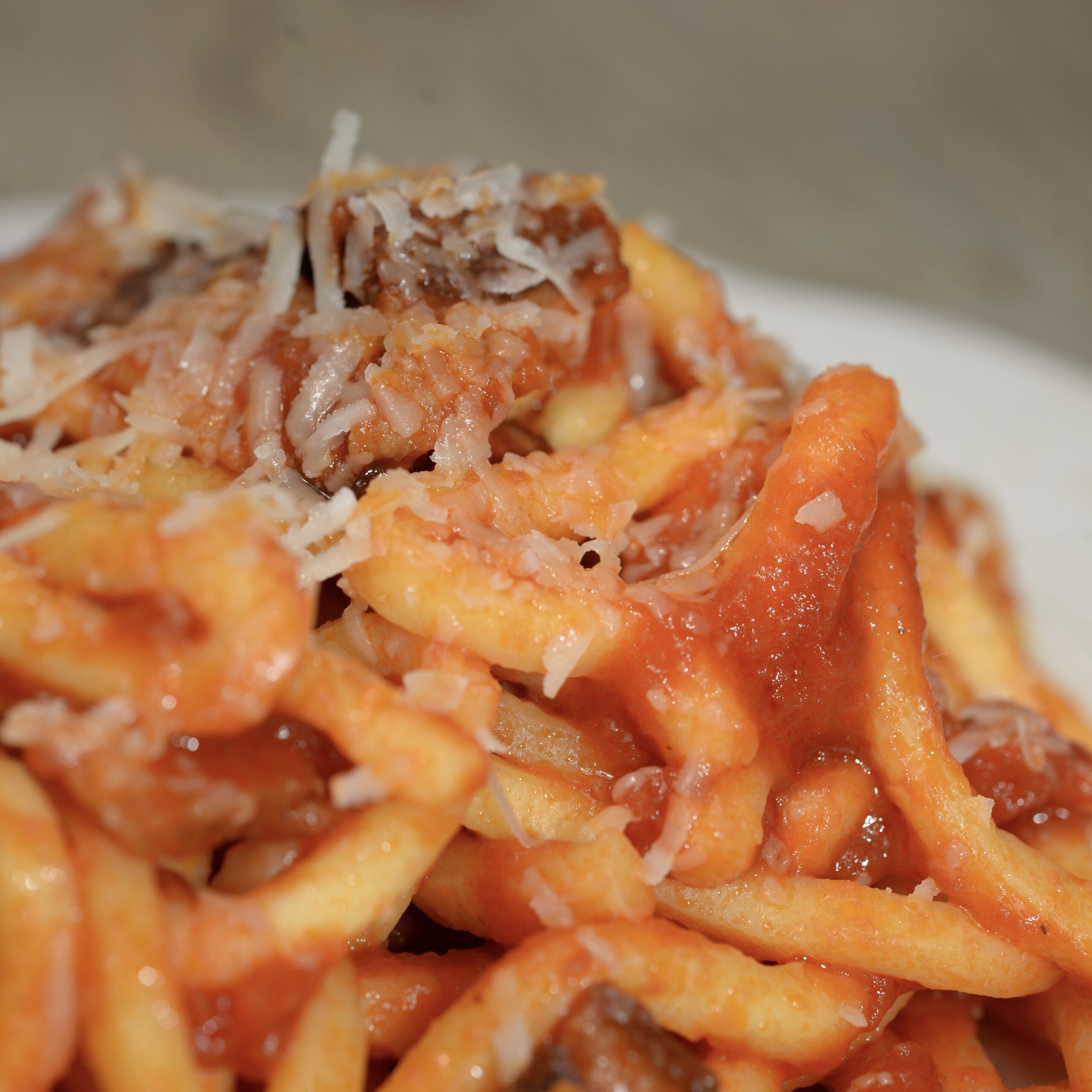 Tonnarello al dente, guanciale croccante, pomodoro e pecorino. L’Amatriciana fatta come si deve, servita calda e ricca di gusto romano.L’Amatriciana non perdona le scorciatoie: serve il guanciale giusto, tagliato spesso e reso croccante, il pomodoro dolce ma deciso, il pecorino romano sapido al punto giusto. Noi ci mettiamo anche un po’ di cuore e una pasta che tiene il morso, il nostro tonnarello all’uovo, perfetto per assorbire il sugo. Servita calda, fumante, è un inno alla romanità. E quando la infiliamo nella rosetta croccante, diventa street food d’autore, un morso che racconta la tradizione con ironia e carattere.